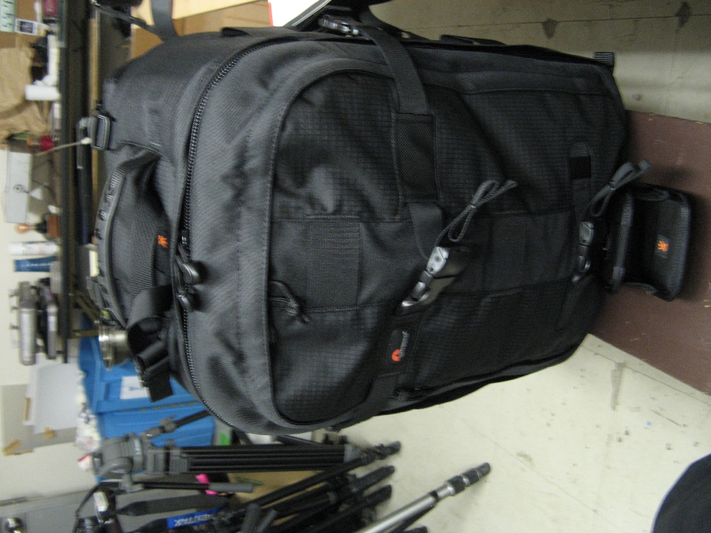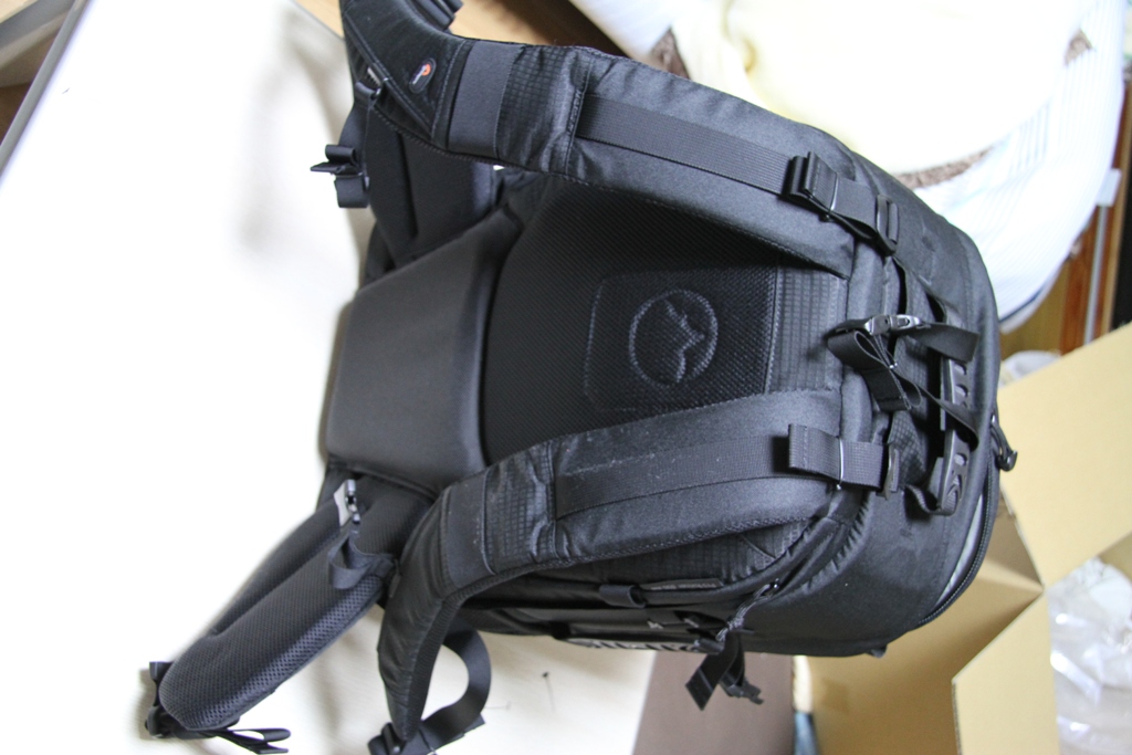 外観はかなりごっつい感じで大きい。強度とは全く問題ないと思う。重い機材を入れても、肩かけのクッションが効いてくれてあまり重さは感じない。