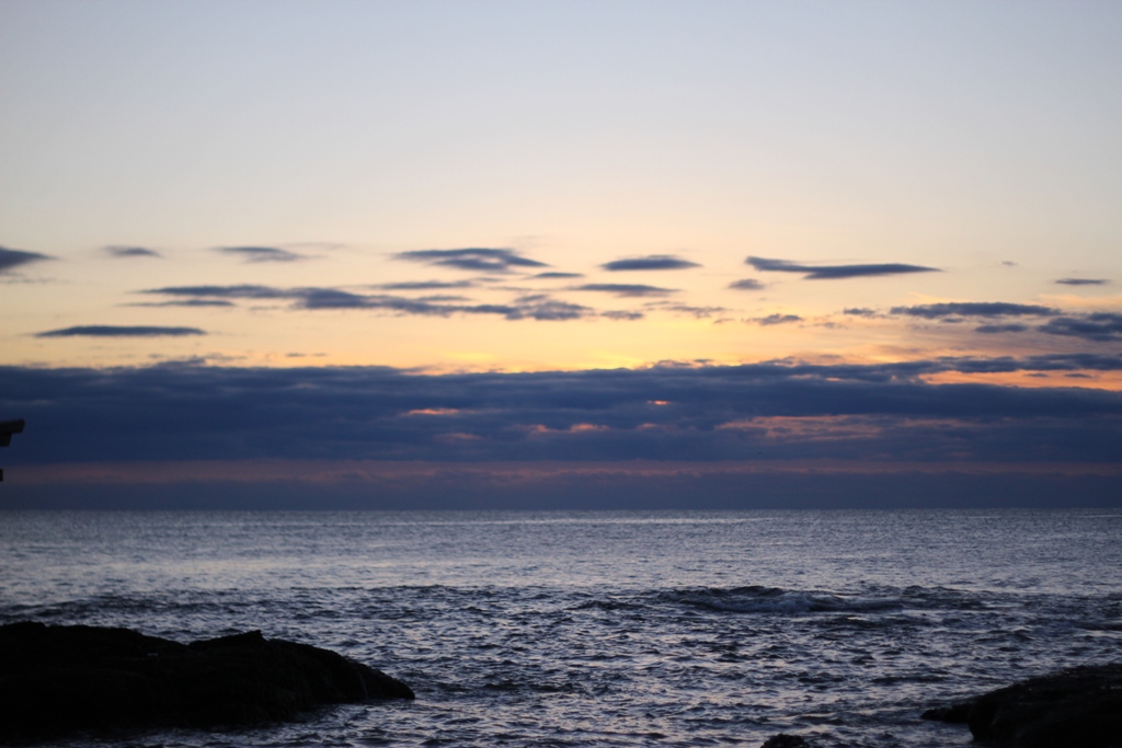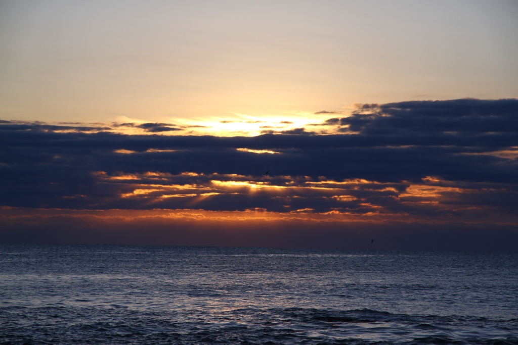 明るくなり始めた!……が、以前水平線上は曇ったまま。