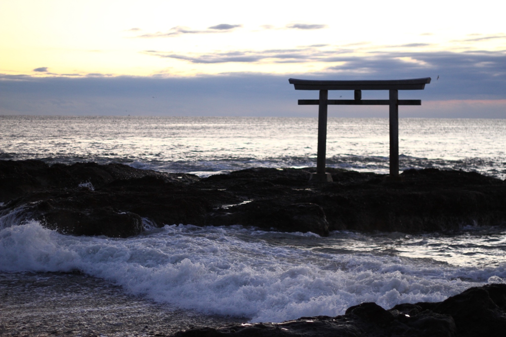 あんなにたくさんの人がいたのに、今はガラガラ。何人かは海や鳥居の写真を撮っていたけどね。