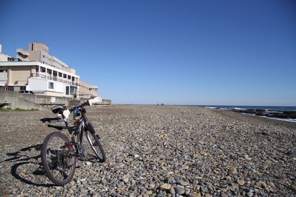 ありとあらゆる防寒着を着込んで、いざ出発。大洗にあるローソンで5Dの使い手の方と待ち合わせ兼朝食。それから大洗の海岸へと出発した。