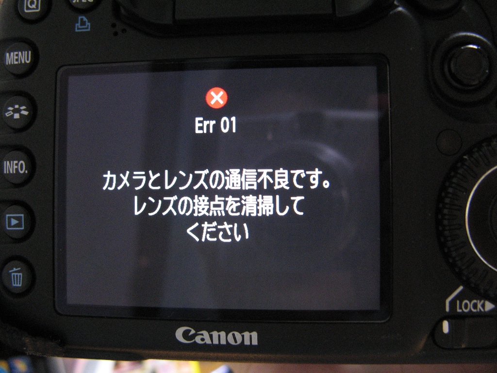 「カメラとレンズの通信不良です。レンズの接点を清掃してください」